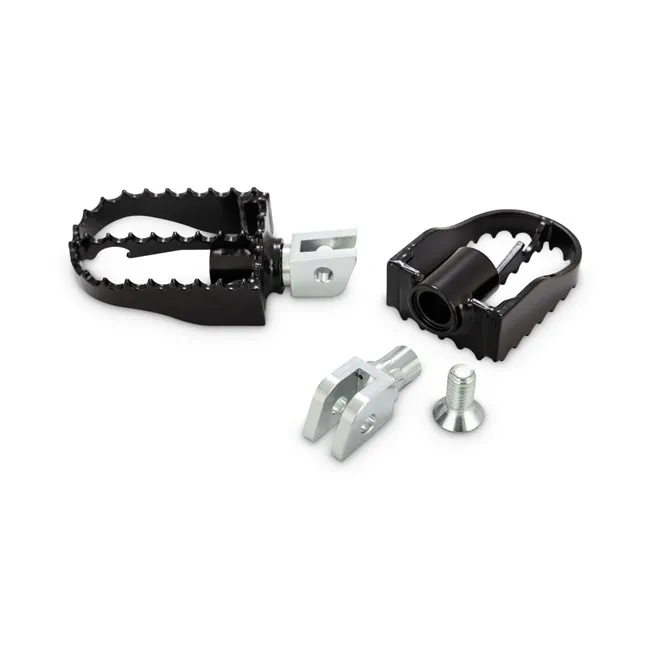 ×Inspired by the bear trap style of the 70's motocross bikes and designed to fit your street machine. Our Steel MX Style Pegs offer an adjustable clevis with built-in teeth that will bite down and clock them to your liking; they also feature a serrated edge to keep your feet planted.