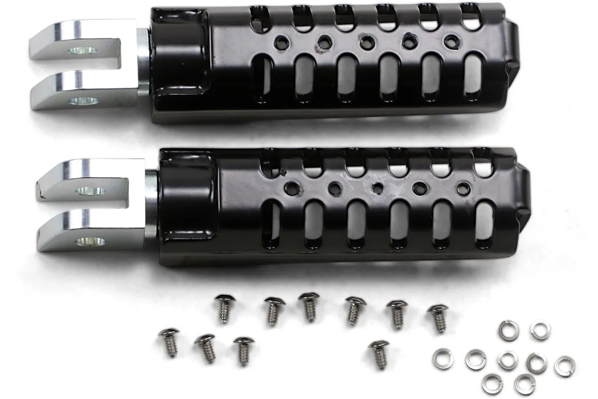 ×These powder coated steel pegs offer good lean angle with their slash style bottom edge.
