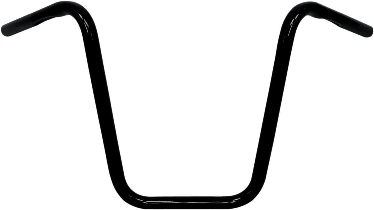 Material: Steel Rise: 35,5 cm (14") Base Finish: Gloss End Rise: 35,5 cm (14") Controls Diameter: 25,4 mm (1") Width: 76 cm (30") Center Width: 14 cm (5-1/2") Base Color: Black Type/Bend: Ape Hanger| Narrow Features: Smooth, Unknurled Clamping Diameter: 25,4 mm (1") Pullback/Sweep: 20,5 cm (8") Units: Each Color/Finish: Black| Gloss Handlebar Diameter: 25,4 mm (1") Product Name: Handlebar Style: Dimpled