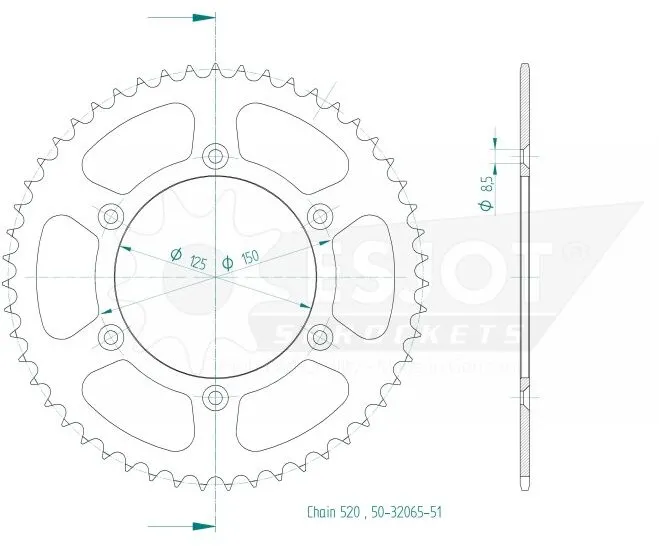 TEETH: 51 POSITION: Rear COLOR: Black PITCH: 520 Product Name: Sprocket MATERIAL: Steel QSTE460 Units: Each Type: Rear