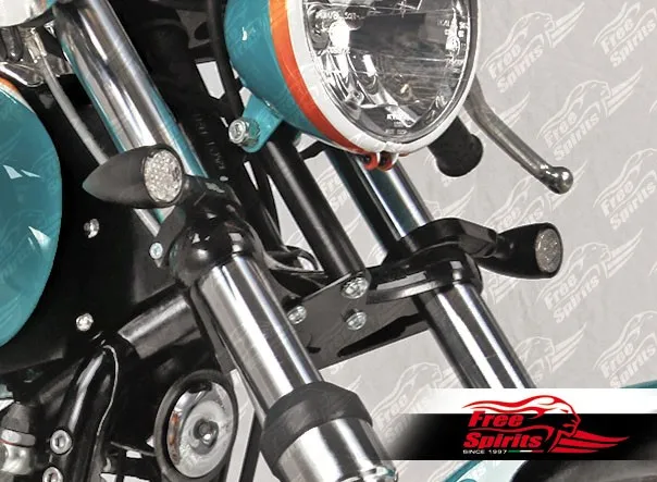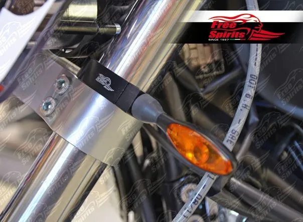 ×Two clamps lightweight CNC machined billet aluminium designed to attach to front forks. Change the location of the original HD turn signals, or aftermarket with M8 thread.
