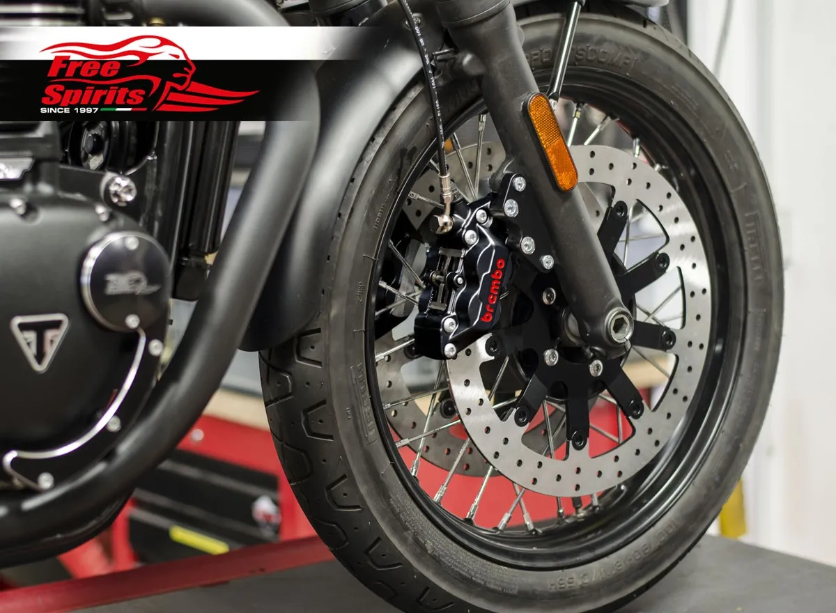×Complete Bolt-in kit with 4 pistons Black Calipers & cnc machined Mounting Brackets black anodized.