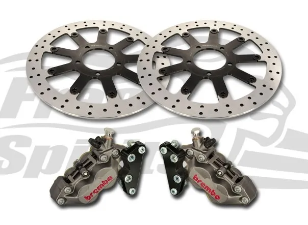 Complete Bolt-in kit with 4 pistons Brembo Black calipers & cnc machined mounting brackets black anodized.