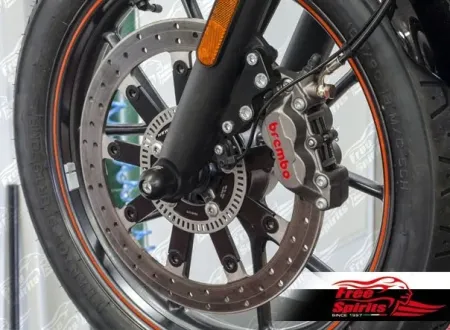 Fully floating front brake rotor oversized (diameter 340 mm), with high-quality braking band fully tempered, alloy hub and buttons.