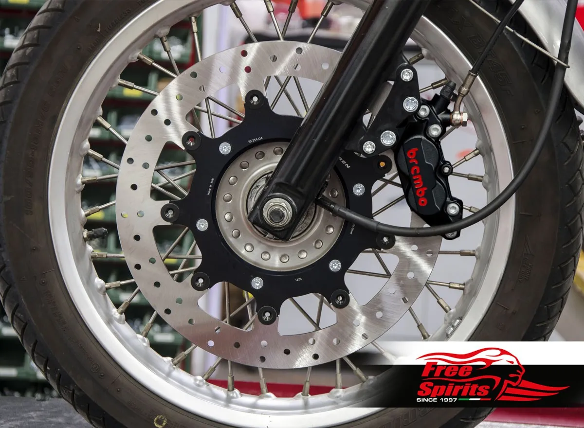 Fully floating front brake rotor oversized (diameter 340 mm), with high-quality braking band fully tempered, alloy hub and buttons.