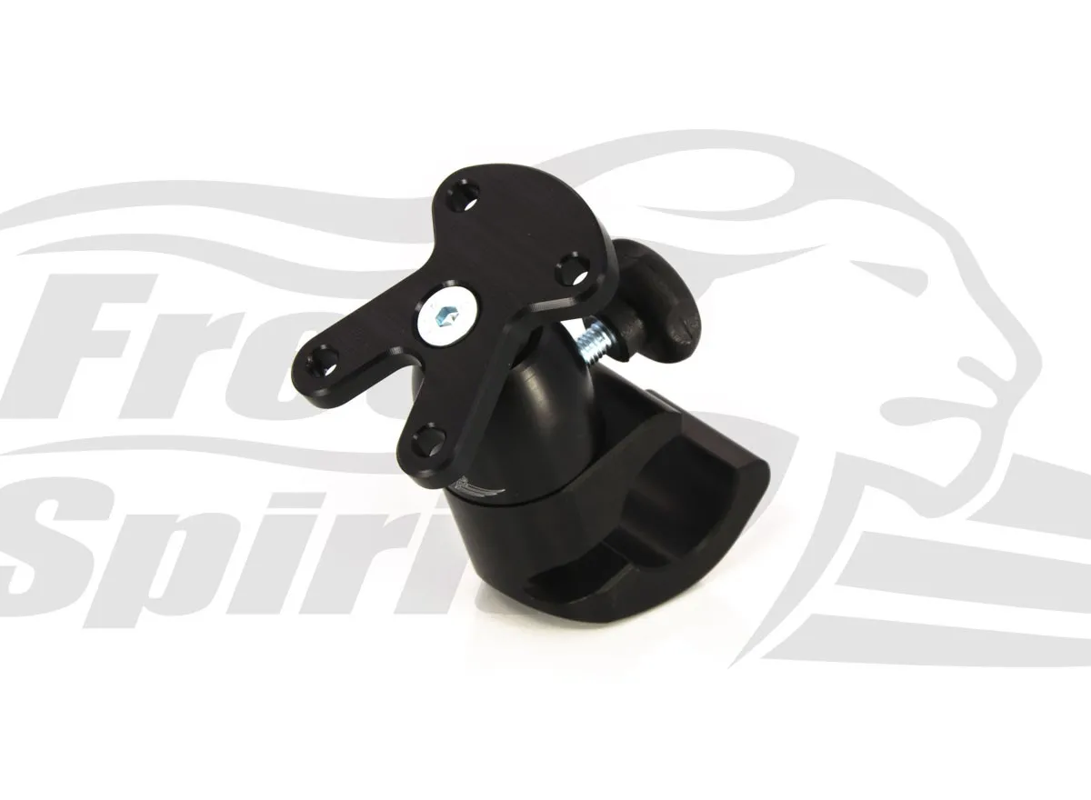 The support has a spherical junction to adjust the device screen to rider’s height.