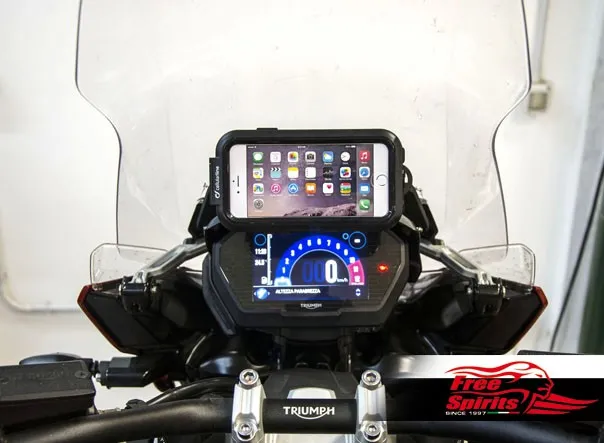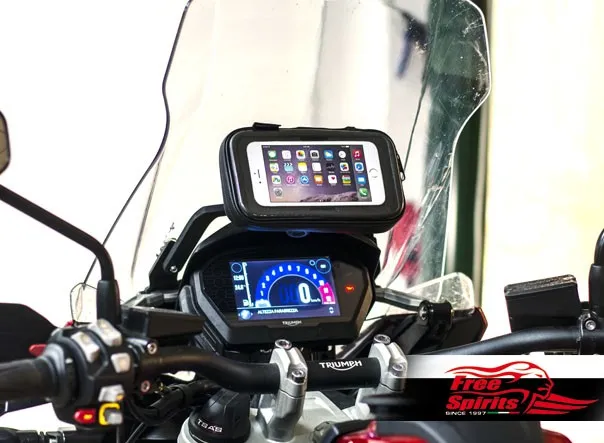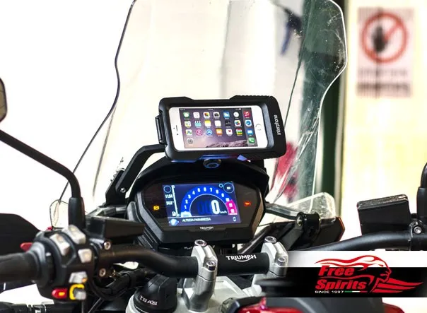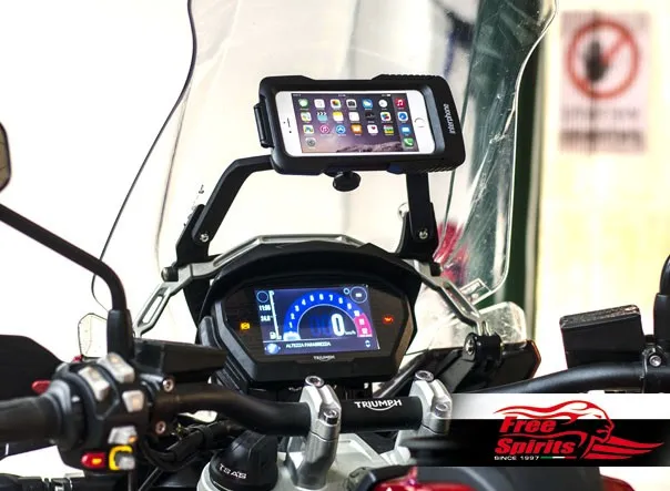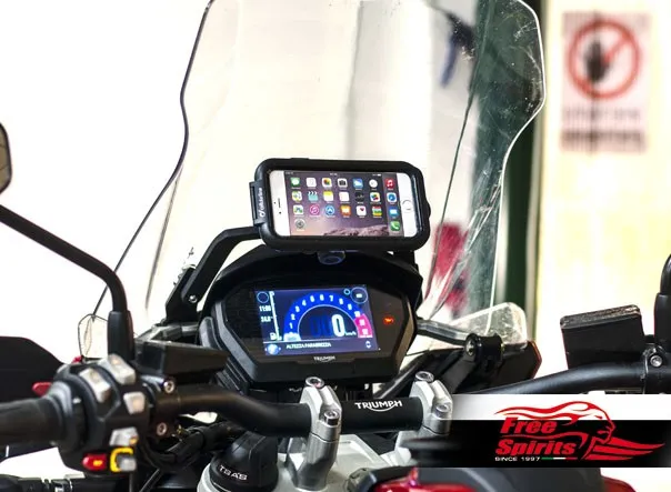 Unlike the universal brackets, our kit precisely integrated into Tiger 1200’s architecture – we designed the bridge bolted on the vibration free windshield support arm of the motorcycle.