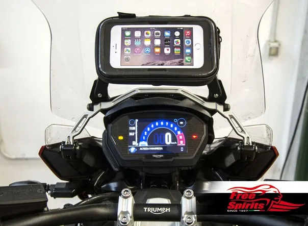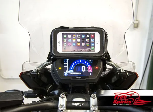 The instrument cluster remain visible and windshield moves freely even with big screen mobile devices fitted.