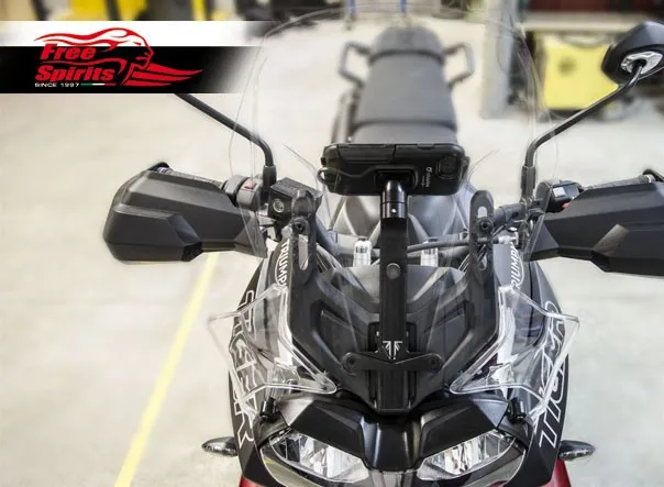 Unlike the universal brackets, our kit precisely integrated into Tiger 800’s architecture – we designed the arm to slide into original front fairing shoe.