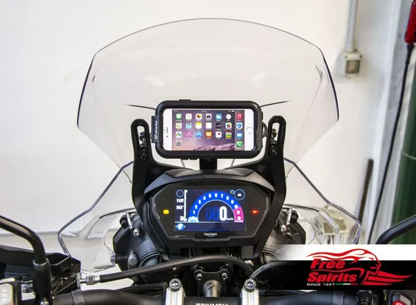 The instrument cluster remain visible and windshield moves freely even with big screen mobile devices fitted.