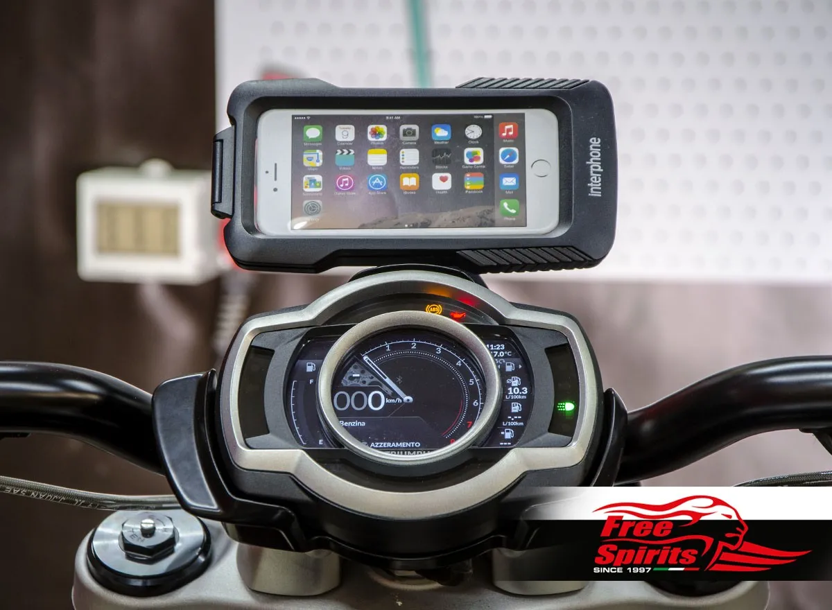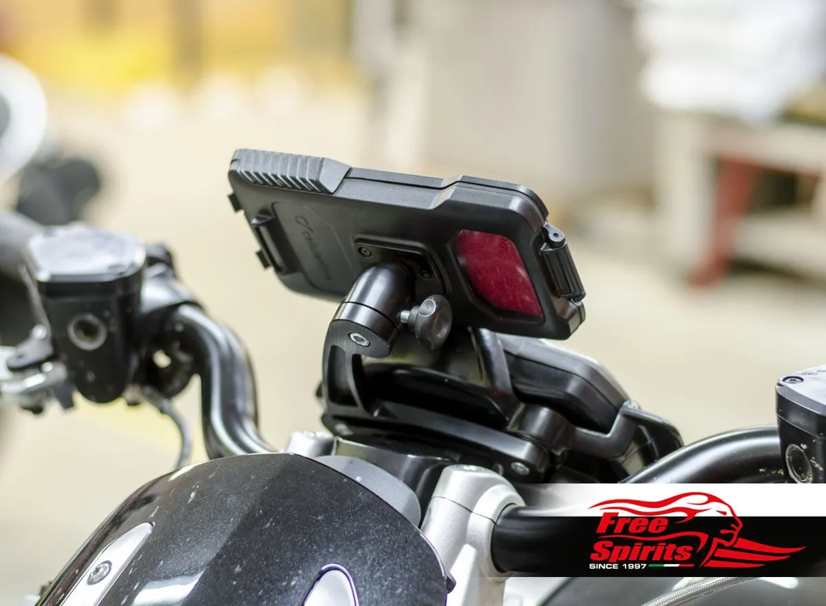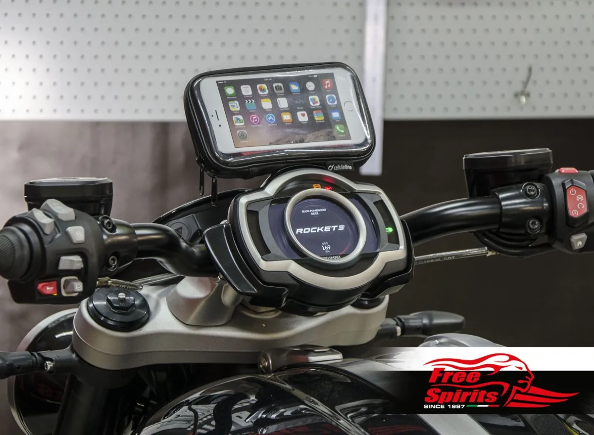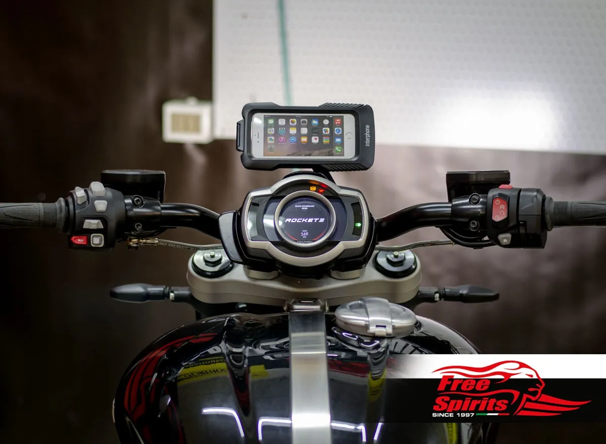 Unlike the universal brackets, Free Spirits kit precisely integrated into Rocket 3 architecture – Free Spirits designed the bracket bolted on the dashboard support of the motorcycle.