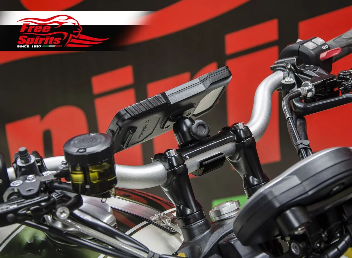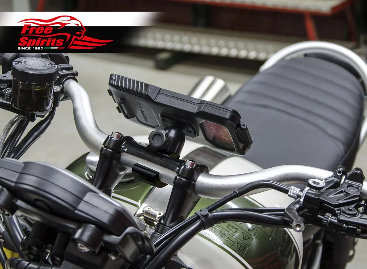 Free Spirits clean-looking kit attaches to the original Scrambler 1200 handlebar.