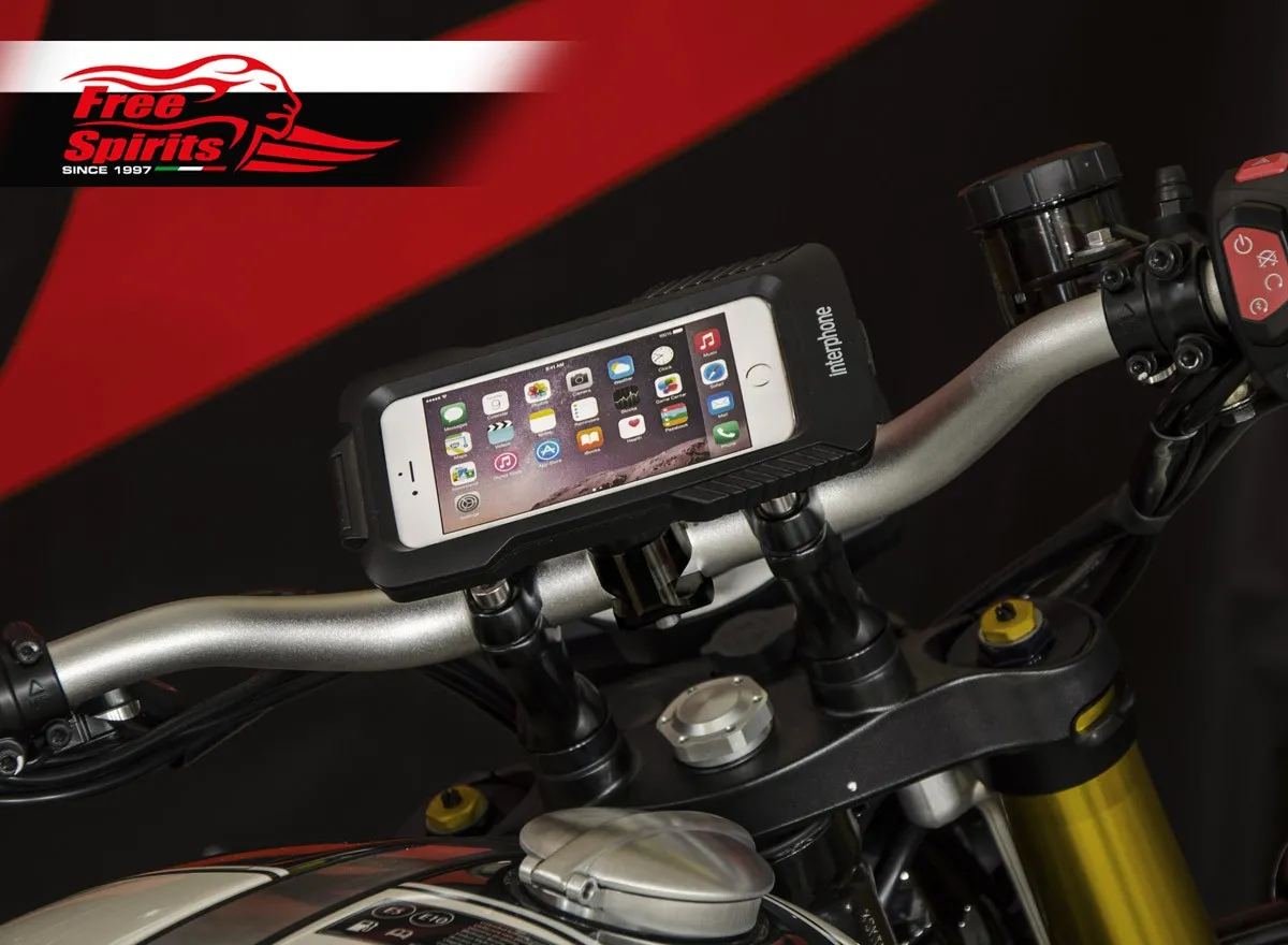 The support has a spherical junction to adjust the device screen to rider’s height.