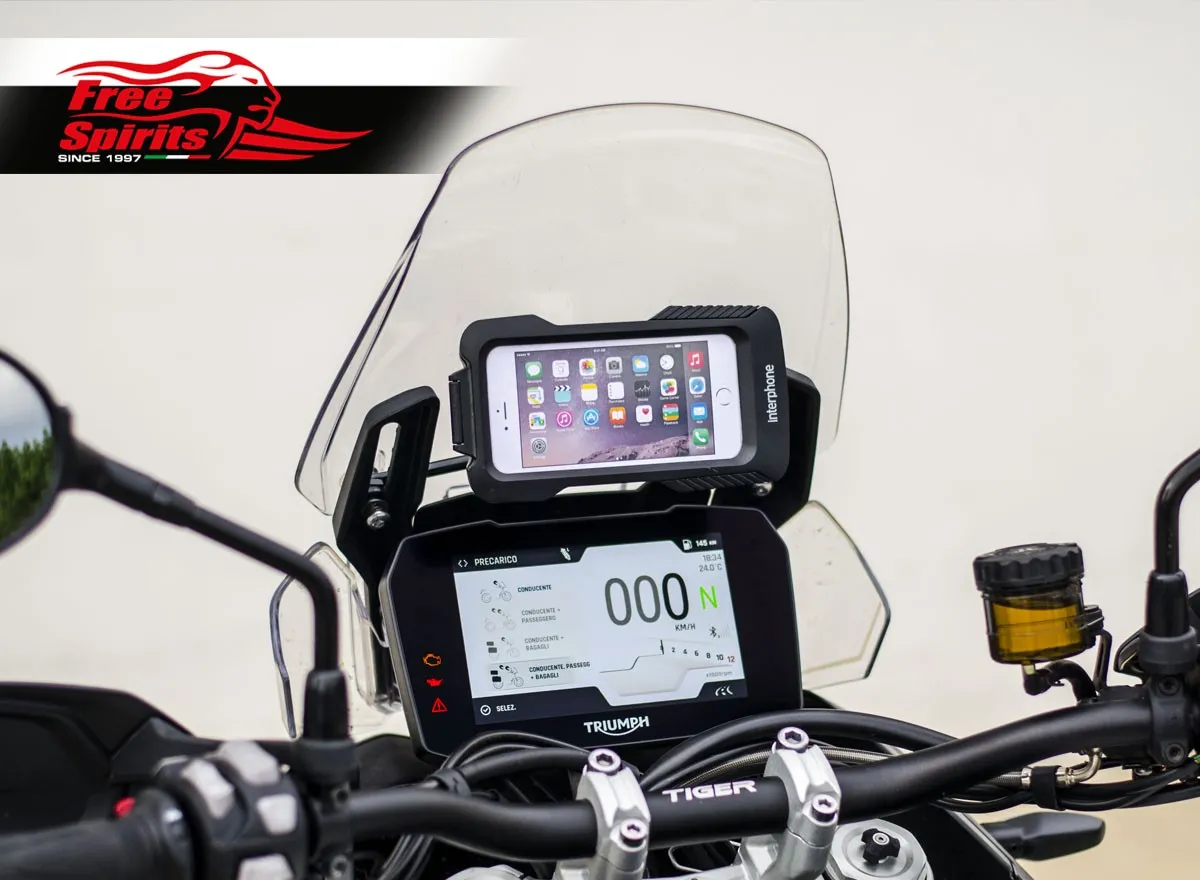 The instrument cluster remain visible and windshield moves freely even with big screen mobile devices fitted.