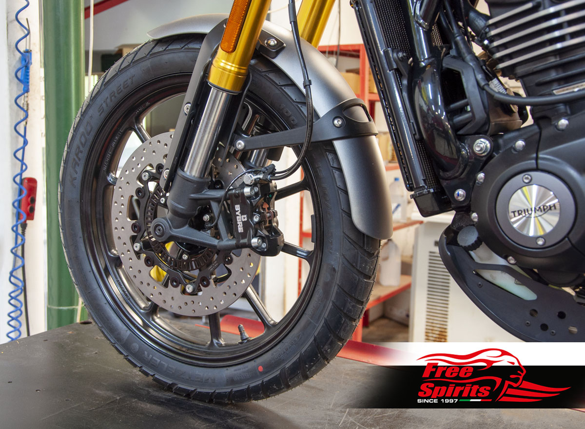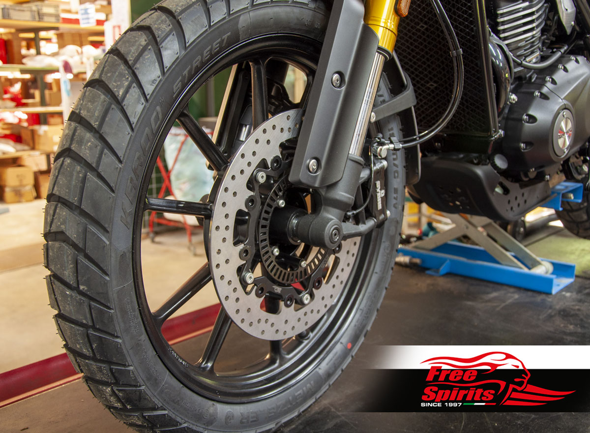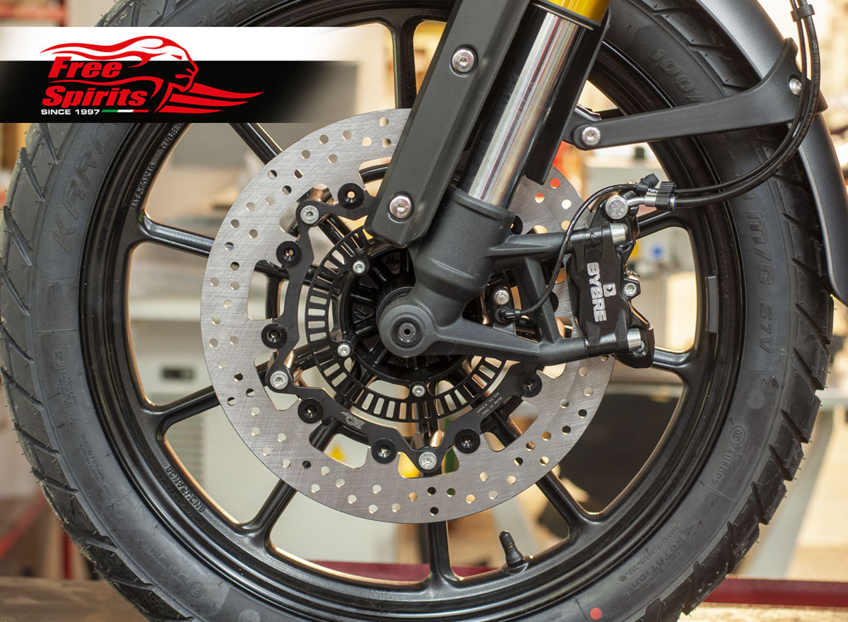 ×Fully floating front brake rotor (diameter 320 mm) OEM replacement for Triumph Scrambler 400.