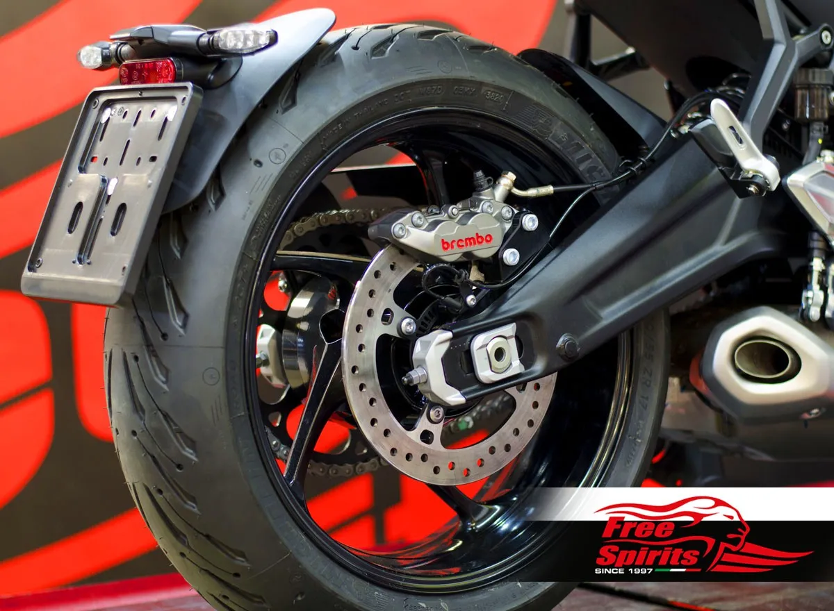 ×Complete Bolt-in kit with 4 pistons Brembo (Titanium) calipers & cnc machined mounting brackets black anodized.