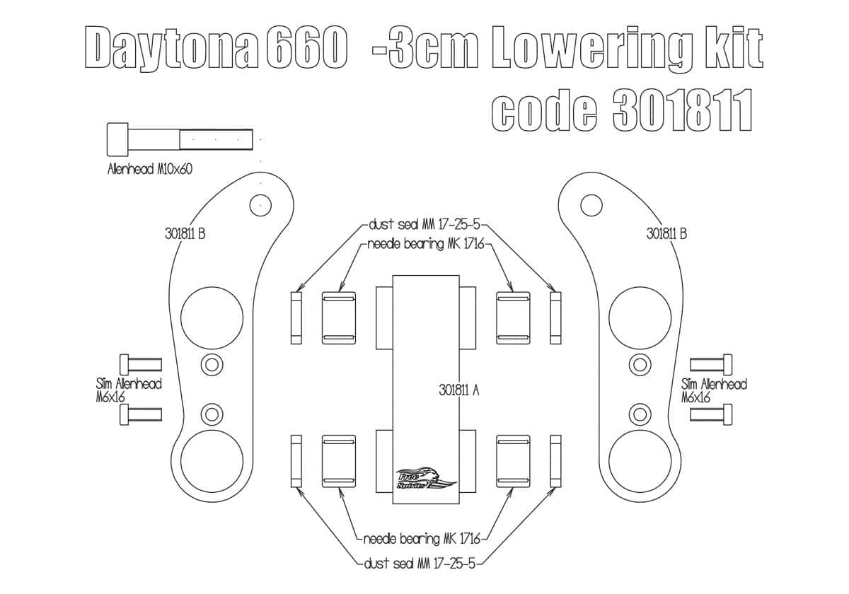 ×Motorcycle rear suspension lowering kit of approximately -30 mm.