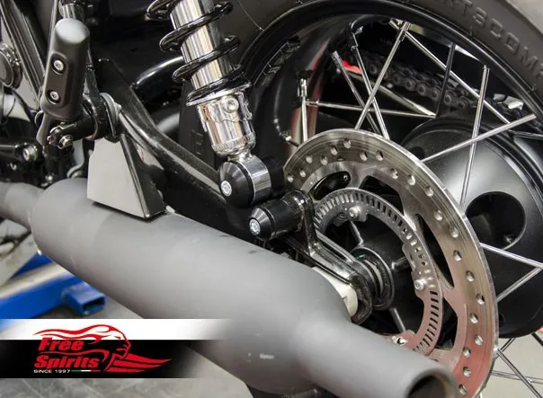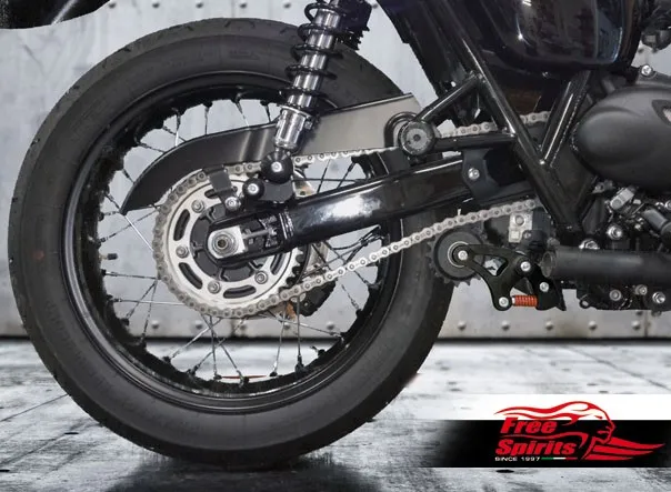 In addition the chain tensioner provided is designed to keep a constant but light tension on the drive chain throughout swing-arm movement, the reduced stress and shock loads not only benefit and prevent premature lengthen of the chain but also and above all reduce stress from wheel and gearbox output bearings.