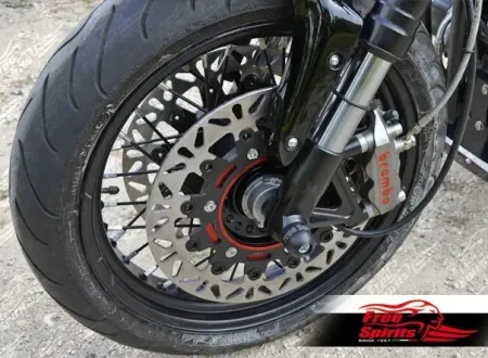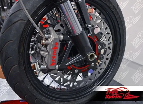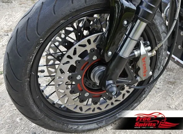 Original “Triumph Speed Triple” USD fork, from 2005 up to our days, is the solution that we suggest, however, if you prefer a more classic look, we suggest the “Triumph Speed-Master” dual disc fork or our new kit 302308.