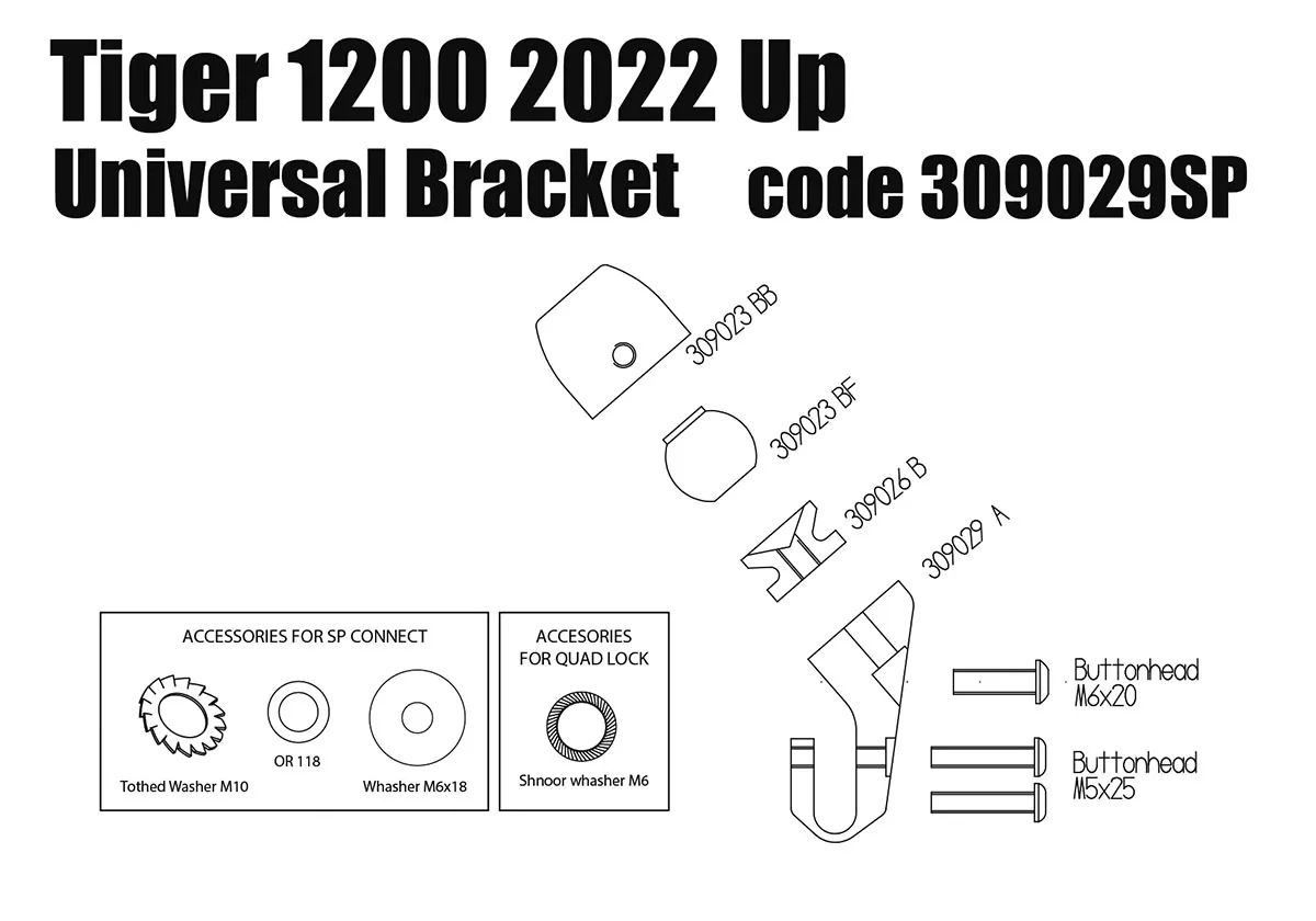 • SP kits are designed to be able to attach smartphone or GPS mounts using M5 threaded hardware (e.g. Quad Lock and SP Connect).