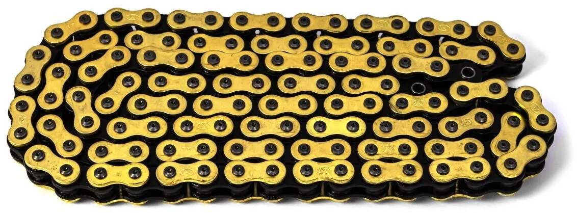 Specially designed for motocross and enduro use Low weight X-ring chain for professional racing CRK pin coating: All pins are hard chromed which significantly increases lifespan in wet and muddy conditions Bushes and rollers are produced using special cold forming technology which eliminates any material deformation Gold (Brass) outer plate plating maximises corrosion resistance Precision pre-shaped bushings ensure a perfect fit between bushings and pins which minimises chain stretch All components are made out of high quality German steel