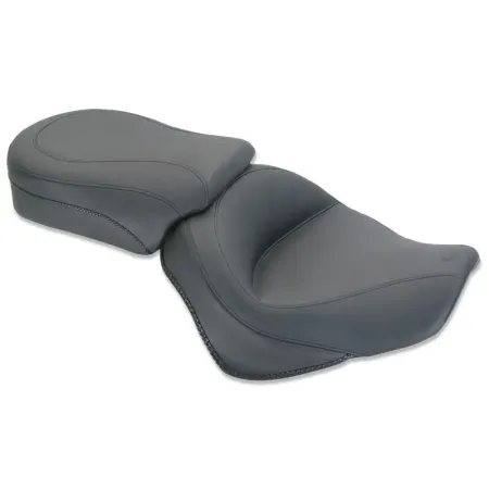 ×Mustang’s two-piece seats are available in two different styles, Studded or Vintage. The deep front bucket measures a full 15" wide. The passenger seat extends forward to provide ample back support for the driver. The rear seat is 11.5" wide and features Mustang’s unique internal steel support wings to keep the entire width of the molded foam supported. All styles are finished with braided edge trim.