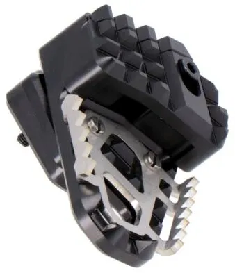 ×SW-MOTECH manufactures this milled aluminum extension for break pedal that fits the original brake pedal on Triumph Tiger 800 models.