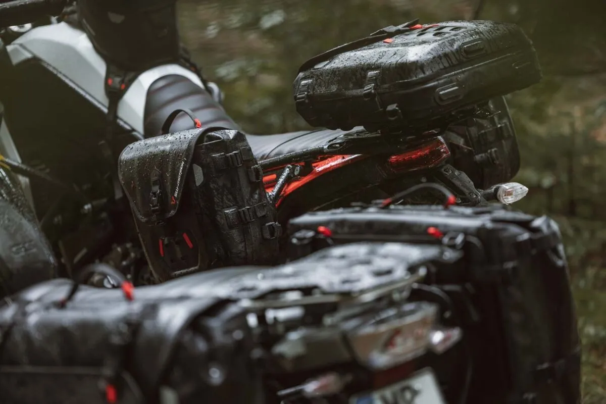The SysBag M WP is a robust soft luggage solution with an adventure look. It is mounted either on the SLC carrier or by looping it on the tail.Similar to the waterproof tank bags, the SysBag M WP is made from a TPU base and EVA components. Both materials are thermally welded and joined together to form a compact unit, making the bag completely waterproof.The SysBag WP M features a roll-top closure and an overlapping lid. The inner pocket is removable, two freely positionable dividers with Velcro fasteners make it easy to keep luggage separate. To allow the bag to be attached quickly to the left SLC side carrier, you'll need to fix the adapter plate that comes included in delivery onto the SysBag WP M in a one-time installation process: Firstly, screw the three mounting elements for the SLC side carrier onto the adapter plate. Next, attach the SysBag WP M to the adapter plate with the loop straps. Once that's done, you can hang the bag on the left SLC side carrier in one simple movement.